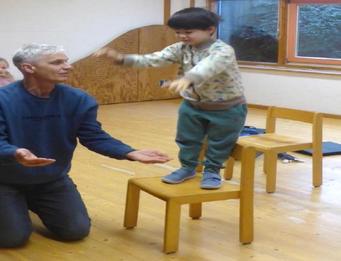 Ebenso erfuhren die Kinder aber auch zu unterscheiden, was ein „gutes“ und was ein „schlechtes Geheimnis“ ist. Außerdem erlebten die Kinder immer wieder Aktionen, die sie noch weiter in ihrer Selbstsicherheit wachsen ließen. So waren sie eingeladen, sich in einer „Mutprobe“ auf einen Stuhl zu stellen und sich in die Arme von Herrn Kratzer fallen zu lassen.