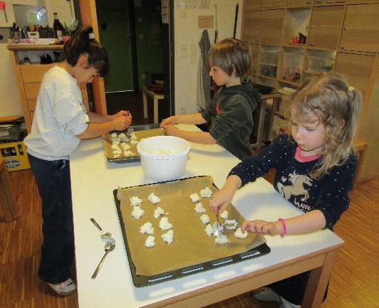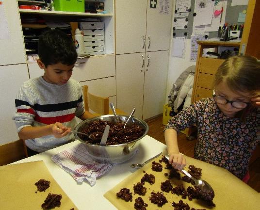 Am Buß- und Bettag verwandelte sich die Adlergruppe in eine fröhliche Weihnachtswerkstatt. Gemeinsam mit den Kindern haben wir unseren diesjährigen Adventskalender gestaltet: kleine Bücher, die den Titel „Frohe Weihnachten“ in 24 verschiedenen Sprachen zeigen. Mit viel Neugier, Kreativität und Begeisterung wurden die Mini-Bücher ausgeschnitten, beklebt und mit viel Spaß am Detail geschmückt. Außerdem haben wir unseren Adventskranz gemeinsam angefertigt – ein schönes Gemeinschaftsprojekt, bei dem jedes Kind etwas beitragen konnte. Und natürlich durfte auch der Duft der ersten selbstgebackenen Plätzchen nicht fehlen! Gemeinsam rühren, kneten, ausstechen und naschen – so wurde der Tag zu einem warmen Einstieg in die kommende Adventszeit.